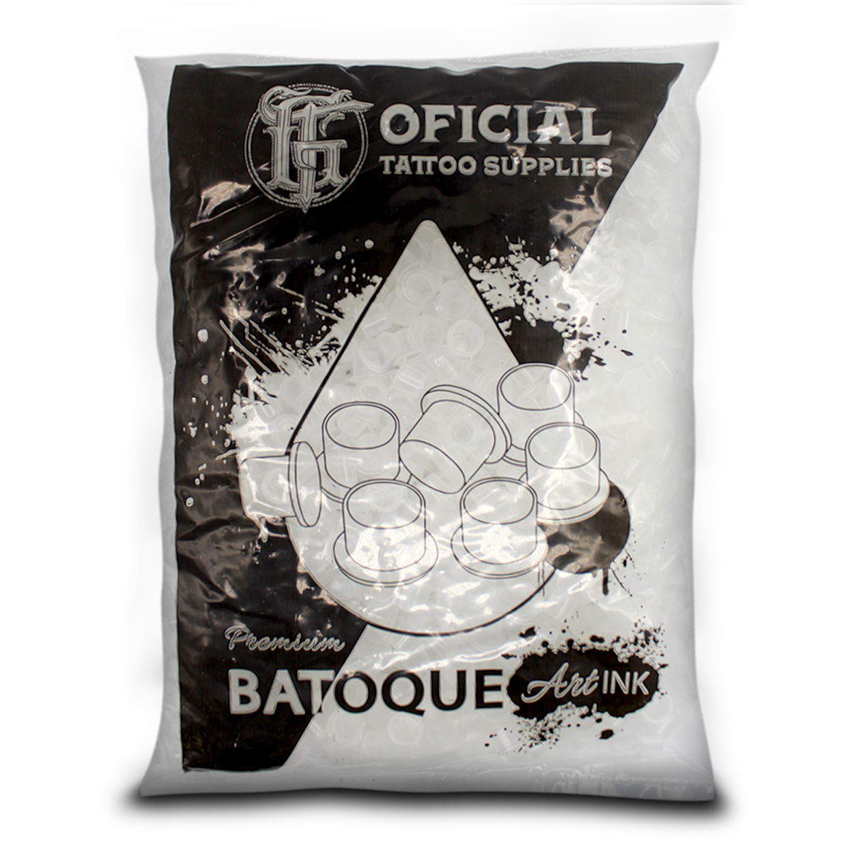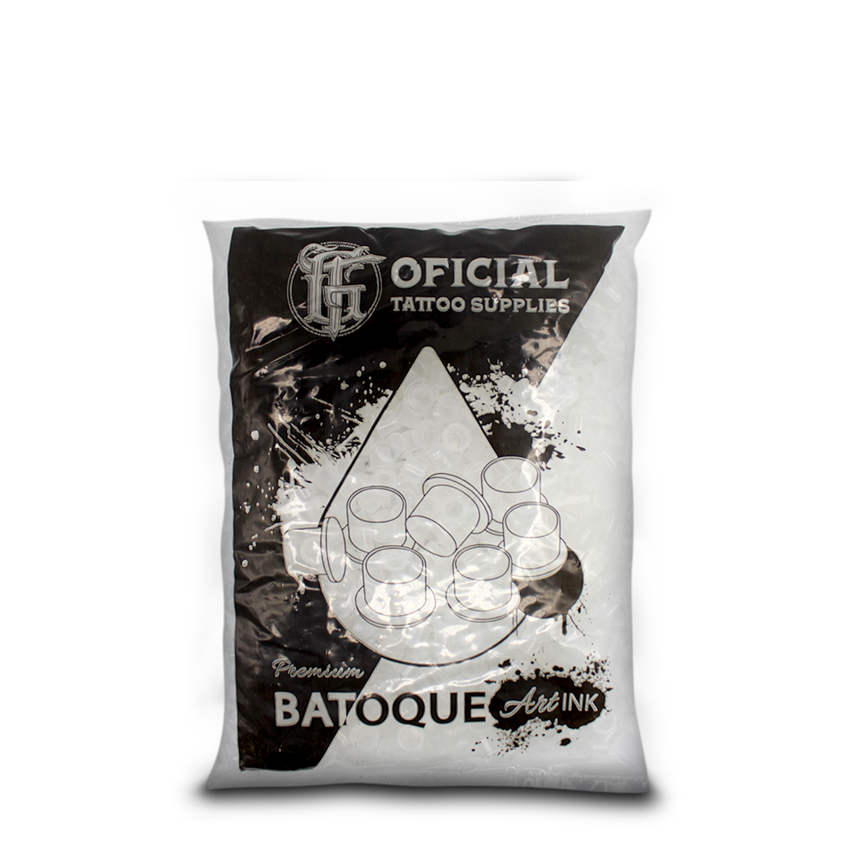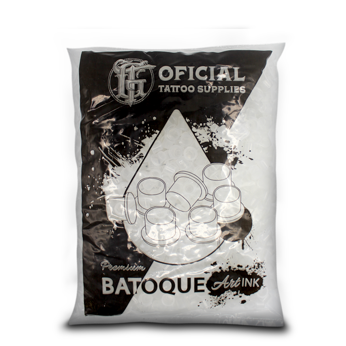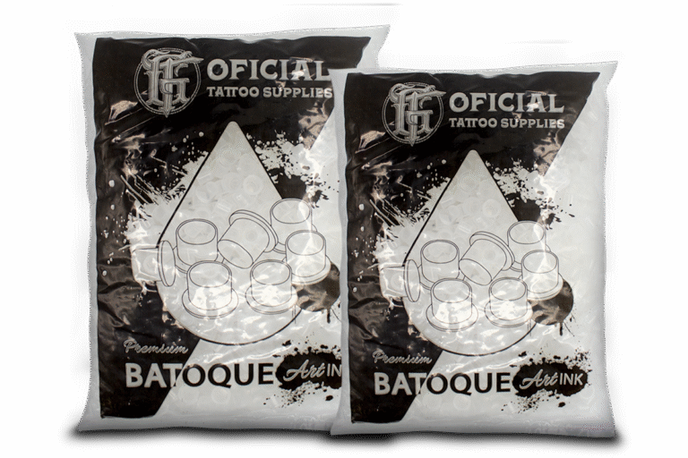 Batoques avulsos em embalagem econômica com 1000 unidades. Disponíveis nos tamanhos P, M e G para atender diferentes técnicas de tatuagem e micro pigmentação.