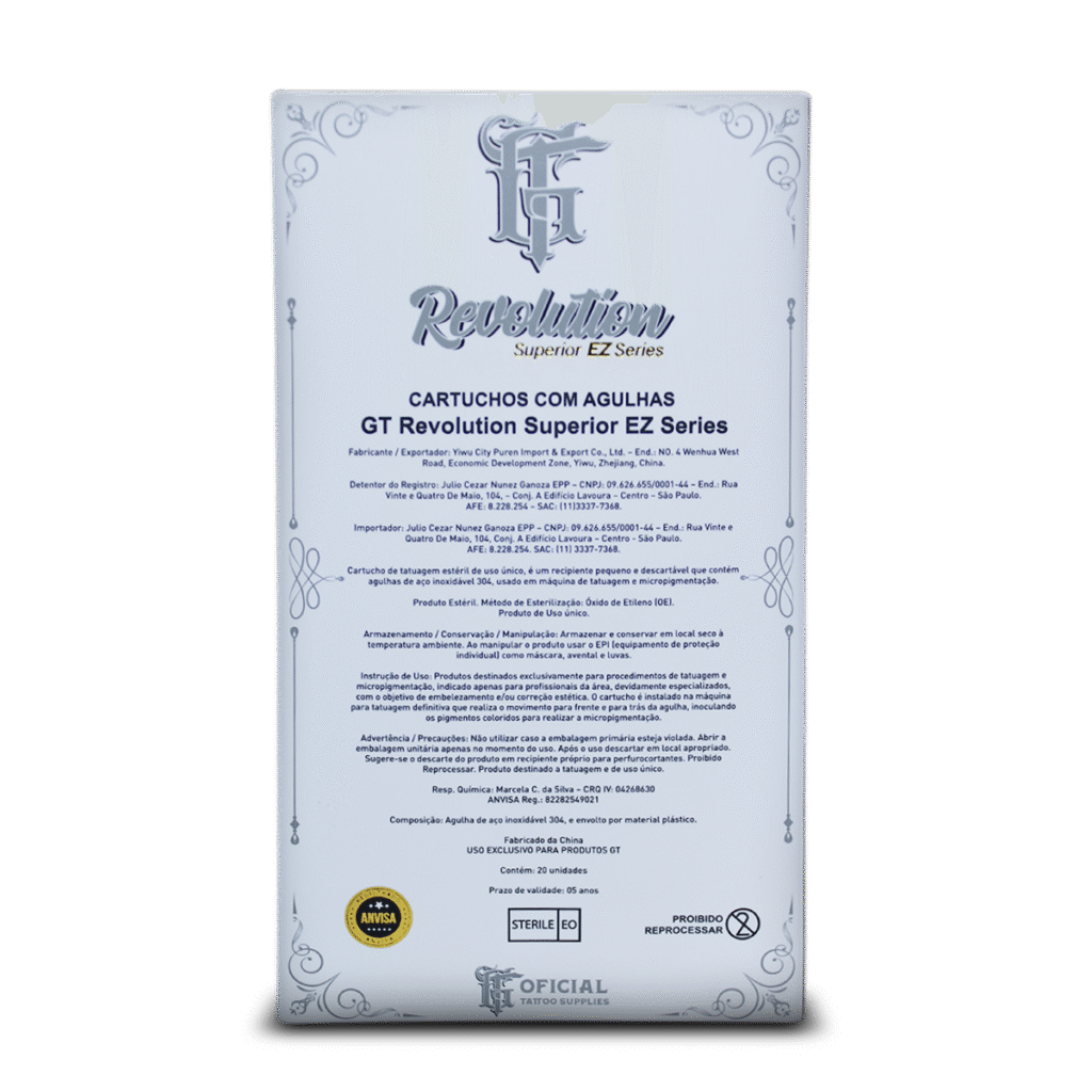O Cartucho Revolution GT Oficial oferece desempenho de alta precisão, com tecnologia avançada para tatuadores que buscam traços uniformes e resultados consistentes.