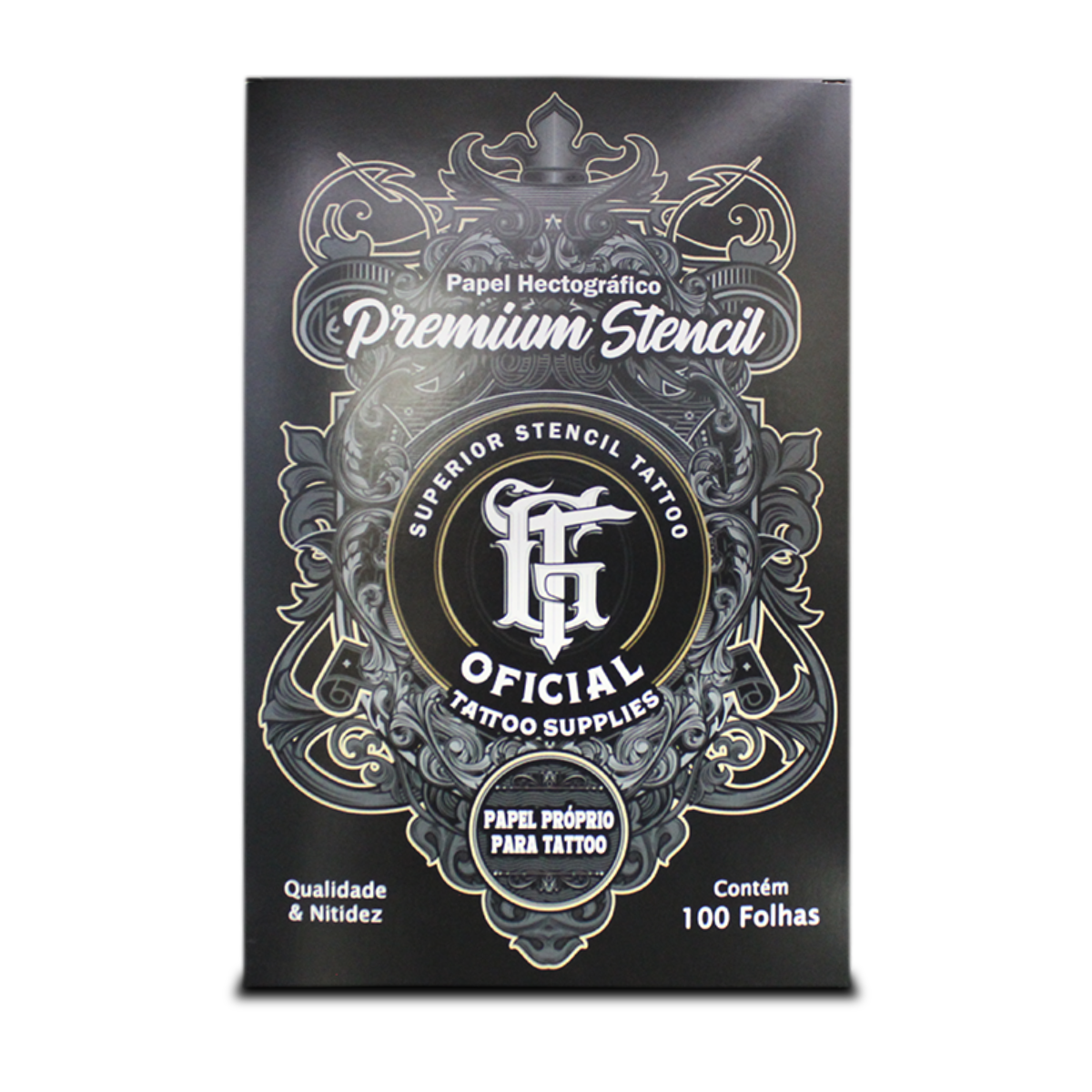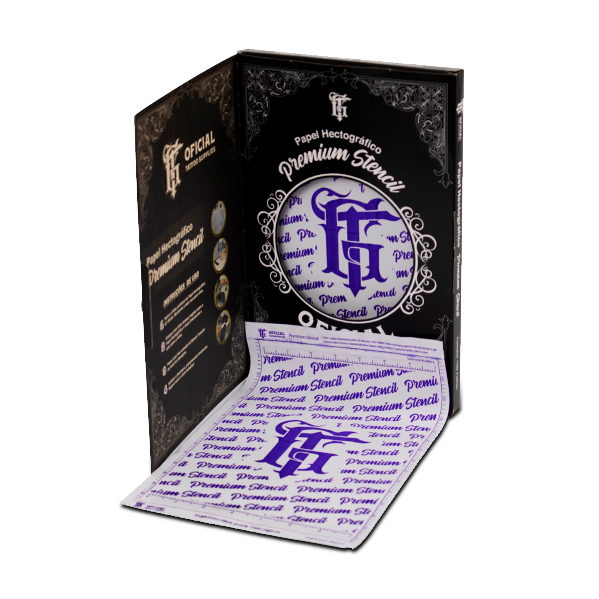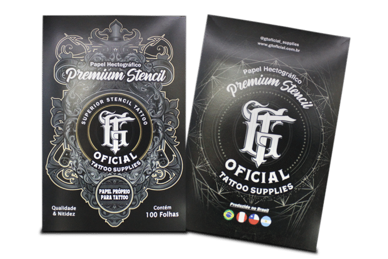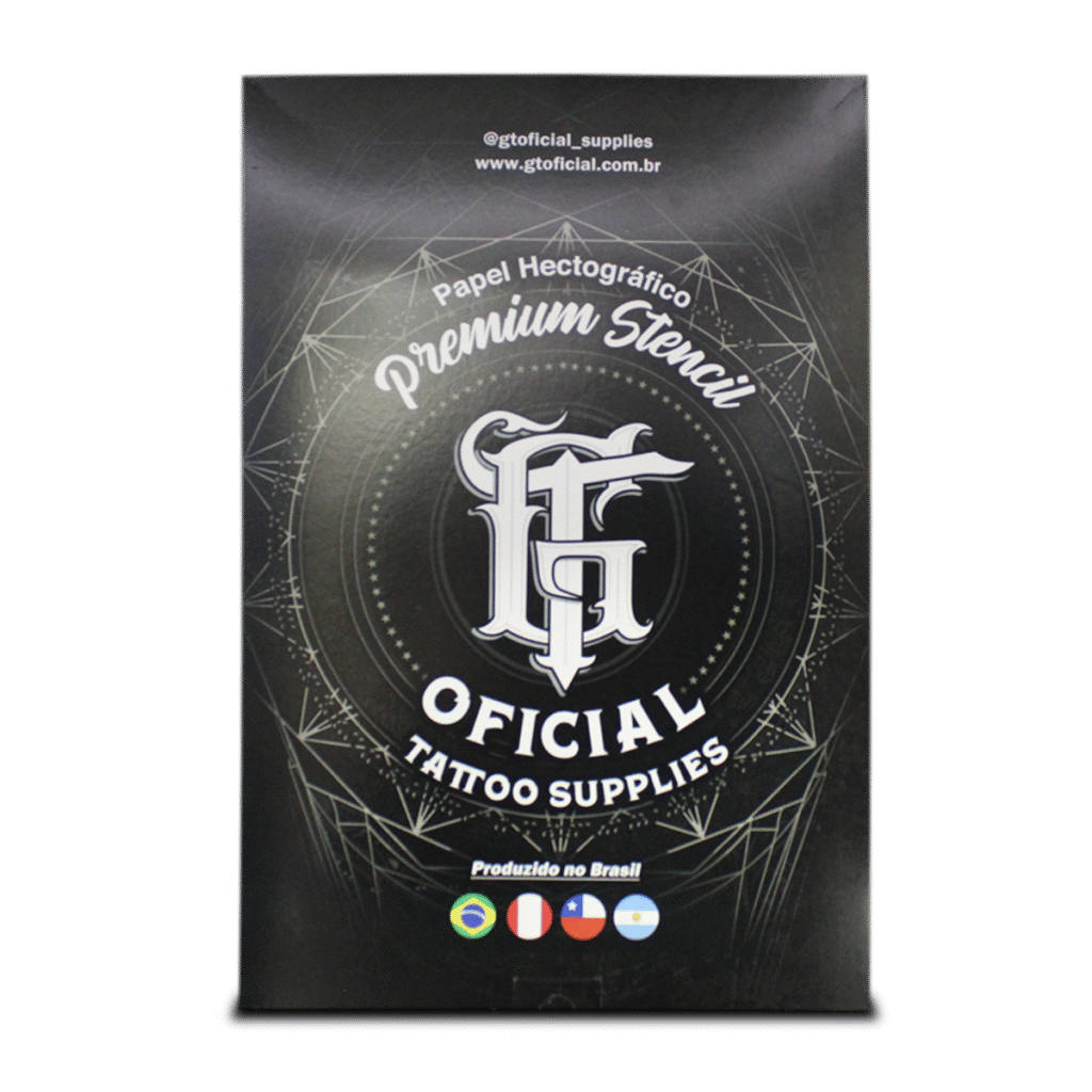 Papel hectográfico profissional GT Oficial, alta definição e transferência precisa de traços para a pele, ideal para estúdios e tatuadores que buscam qualidade e eficiência.